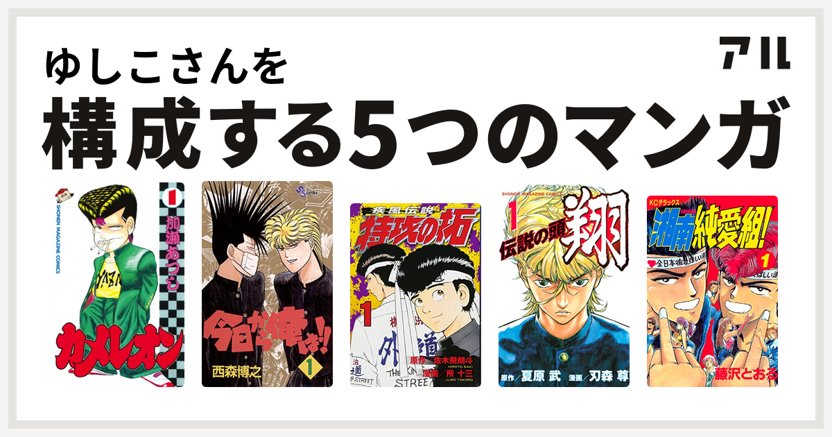 ゆしこさんを構成するマンガはカメレオン 今日から俺は 特攻の拓 伝説の頭 翔 湘南純愛組 私を構成する5つのマンガ アル